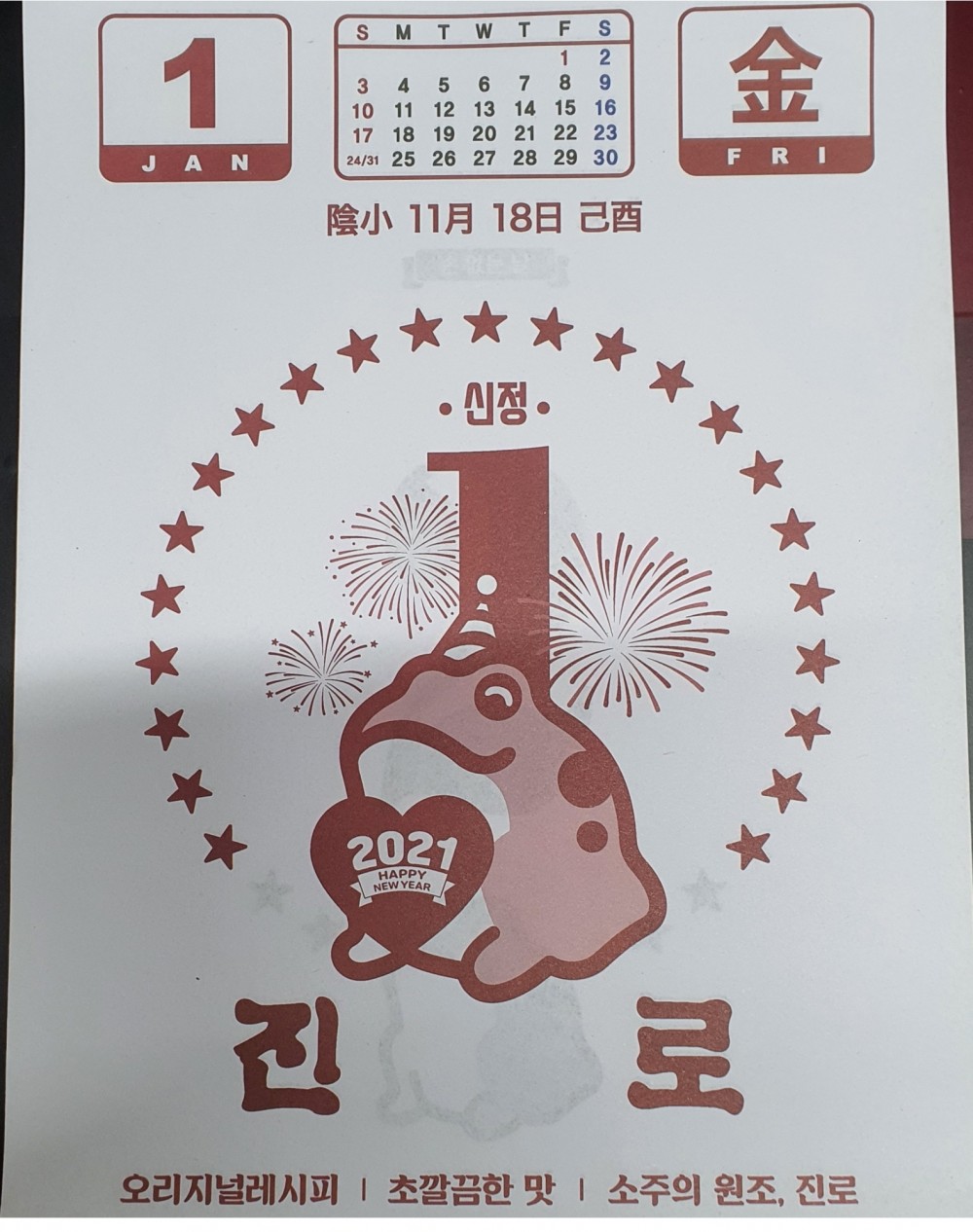 진로소주 회사 2021년 일력(달력) 입니다