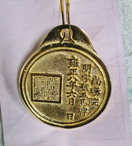 5마를 잘손질하여 금도금한 마패입니다