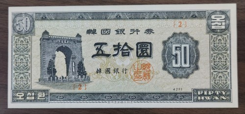 독립문50원/4291년/2번/미사용